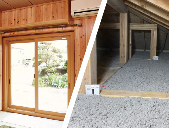 吹き込み工法なので既存住宅の複雑な小屋裏に隙間なく充填できるため高い断熱性能が期待できるだけでなく、調湿性・防音性・防火性・防虫性に優れている最強の断熱材です。